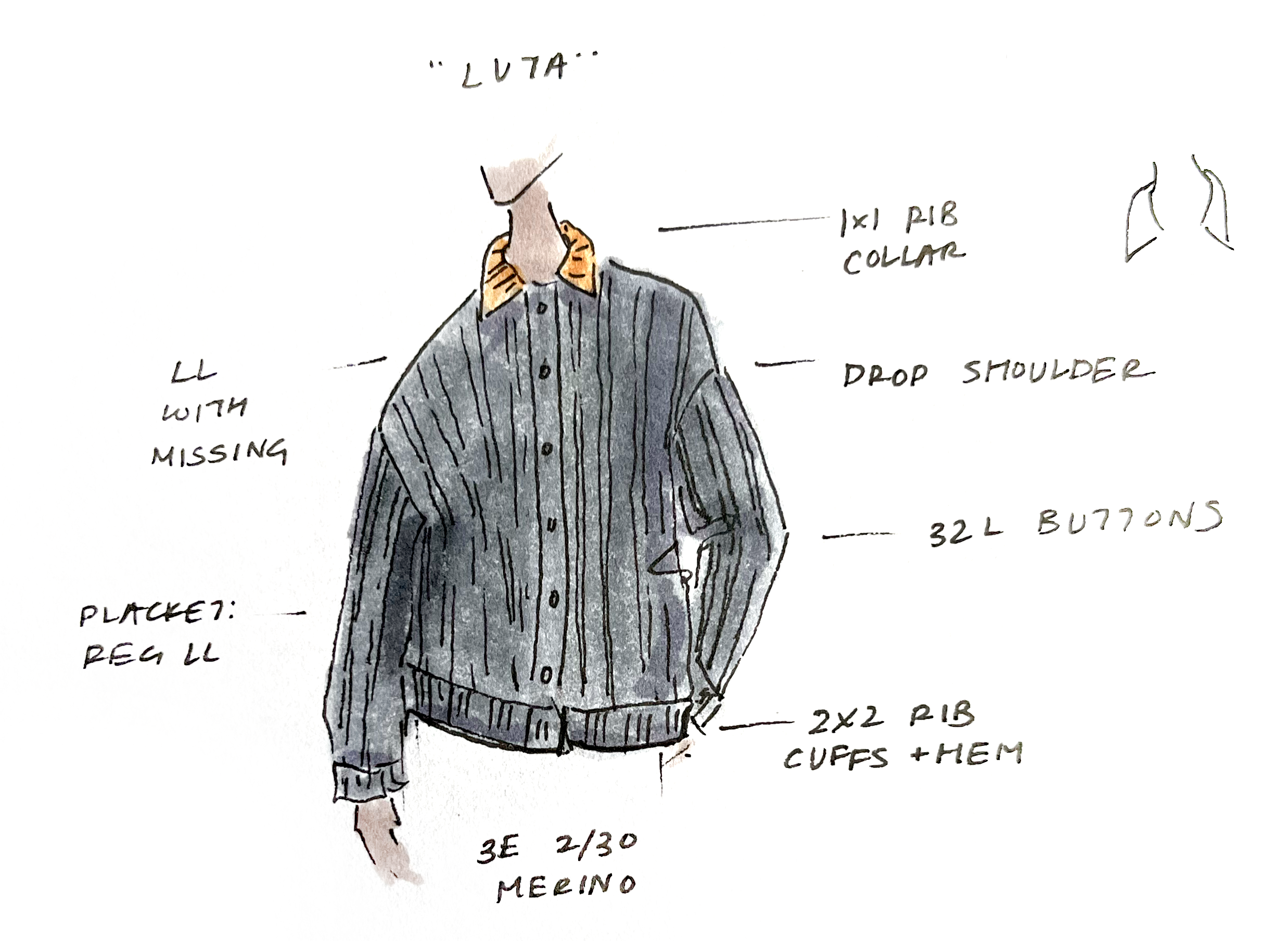 2x2 Rib Hem and Cuffs, 1x1 Rib Collar