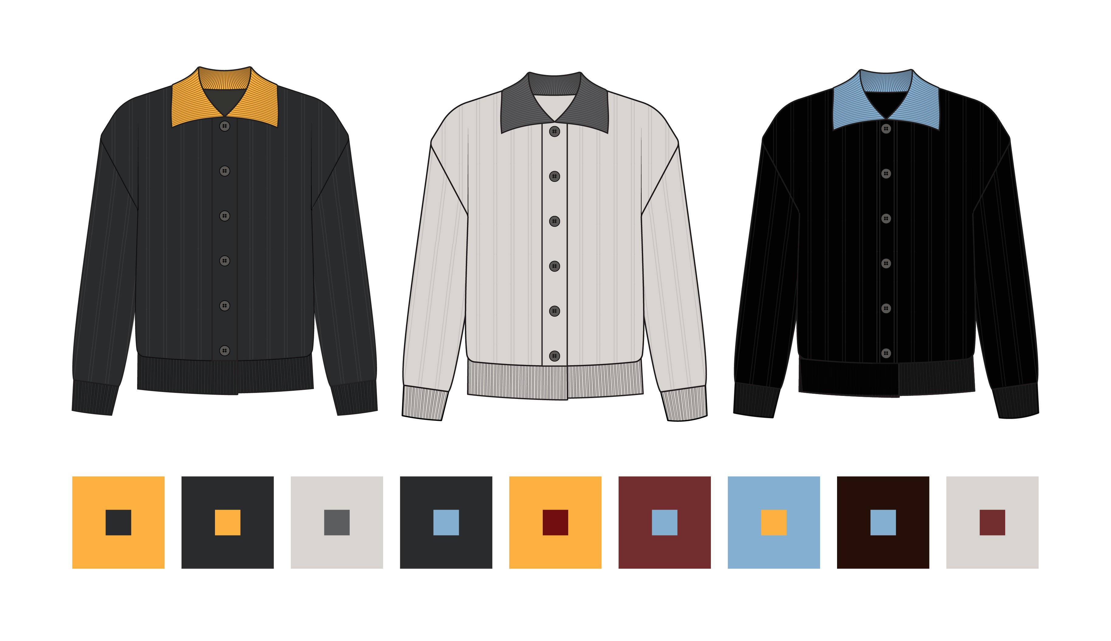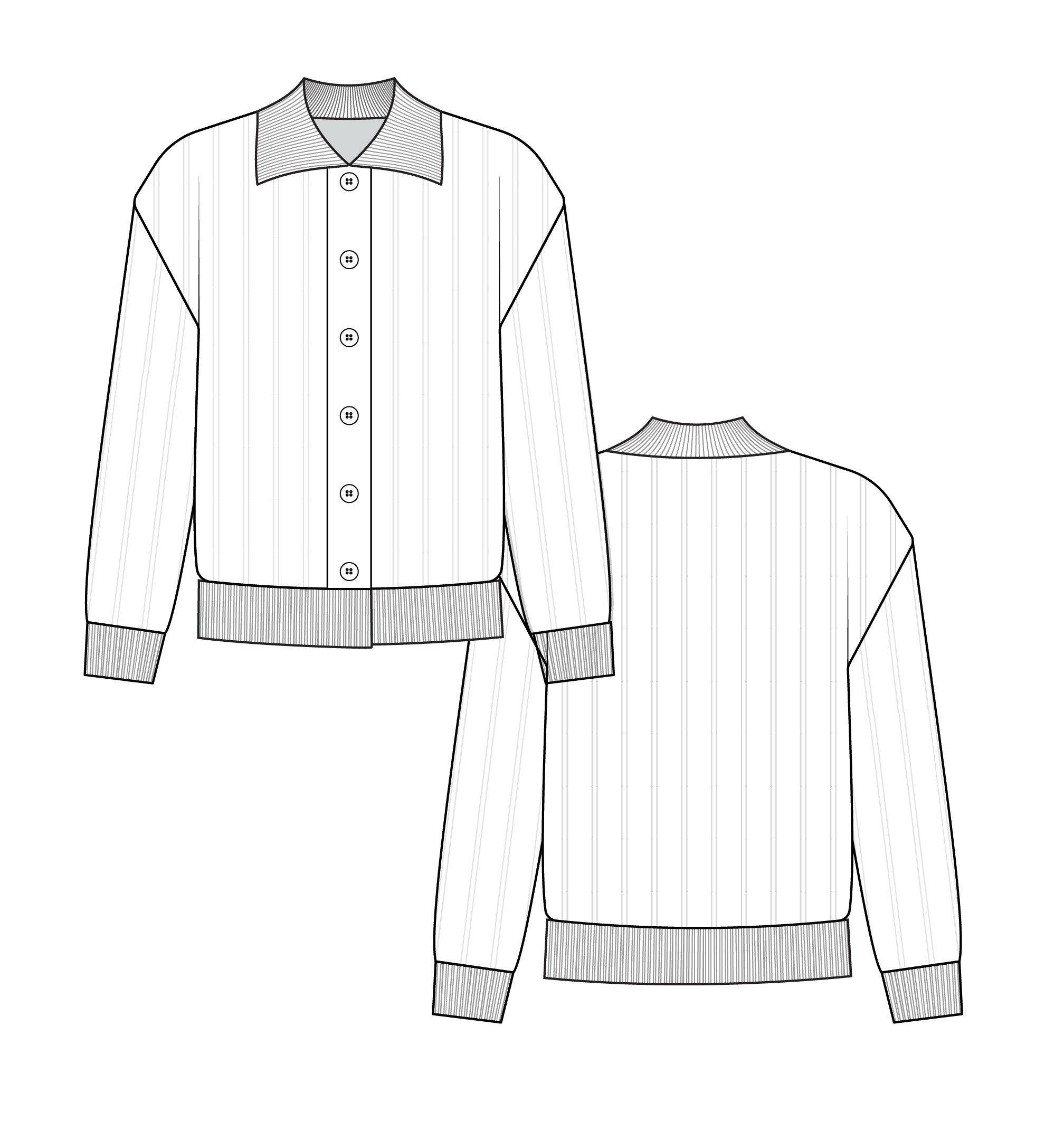2x2 Rib Hem and Cuffs, 1x1 Rib Collar
