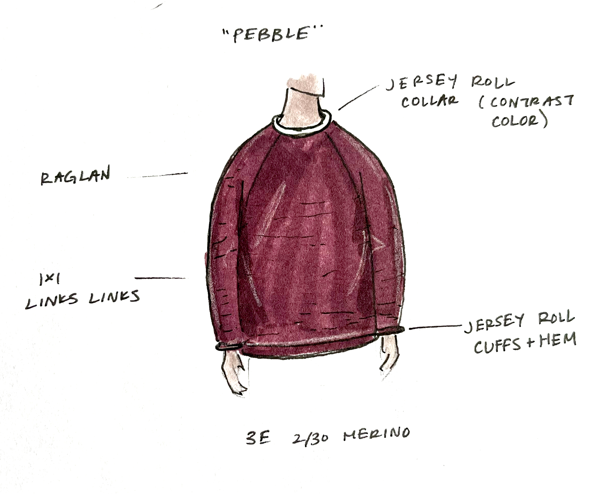 2x2 Rib Hem and Cuffs, 1x1 Rib Collar